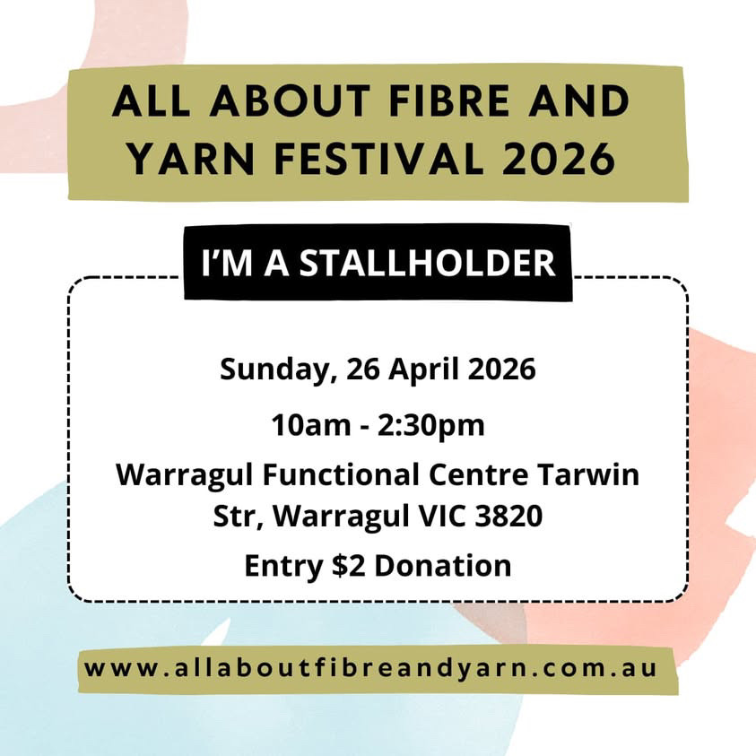 All About Fibre & Yarn Festival April 26 @ 10:00 am - 2:30 pm Warragul Venue TBC, Warragul, VIC, Australia $2
